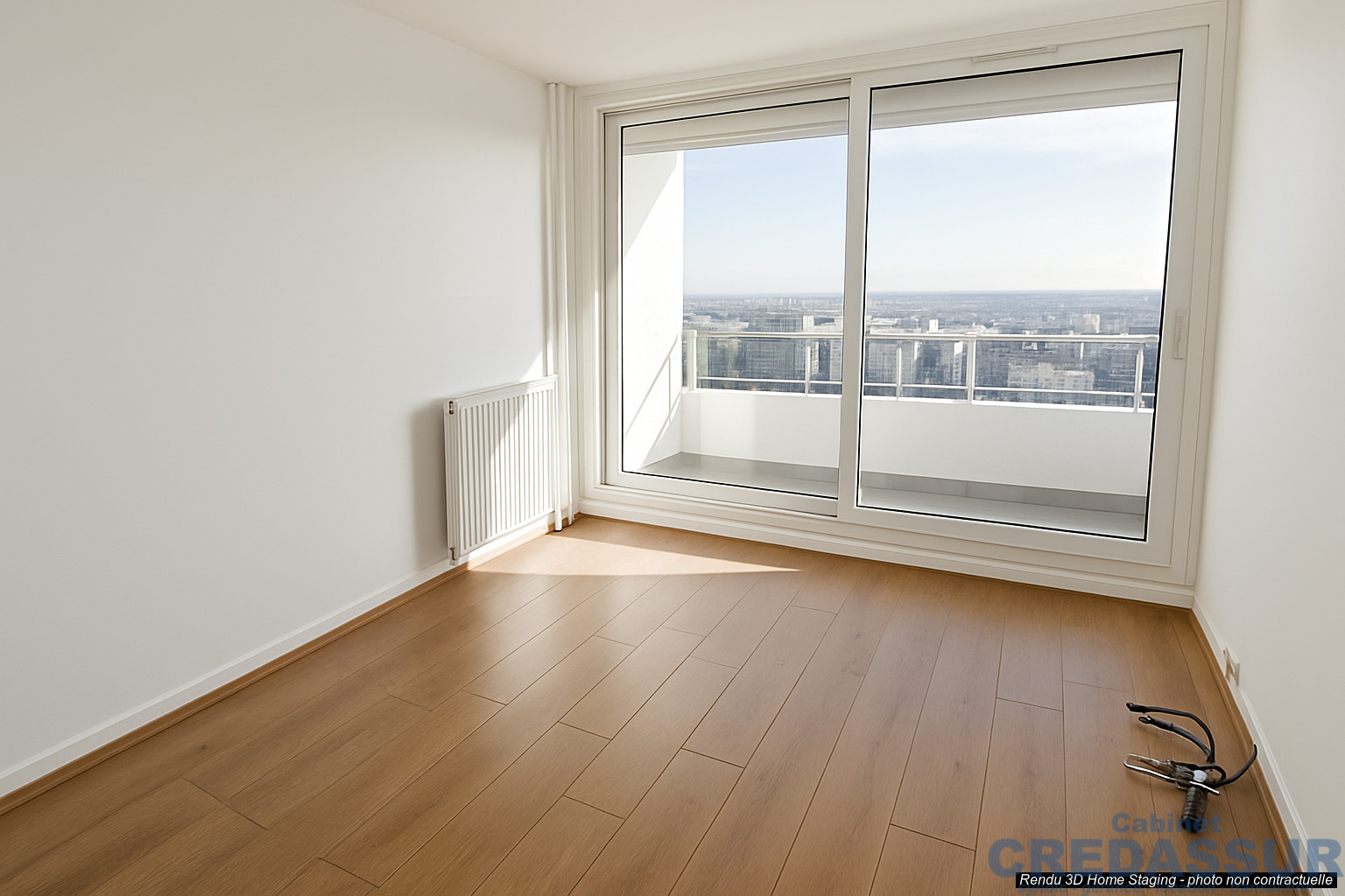 SPACIEUX 2 PIECES ENSOLEILLE AVEC BALCON ET VUE DEGAGEE, TOUR BOUCRY- rue Boucry Proche métro Marx Dormoy, Marché de l'olive et commerces, dans un immeuble contemporain bien entretenu avec sécurité 24/24, cet appartement de 2 pièces exposé est est situé au 28ème et dernier étage avec 2 ascenseurs. Il se compose d'une entrée avec placards, d'un séjour ouvrant sur un large balcon ( neuf), d'une cuisine aménagée et équipée avec balcon, d'une chambre avec volet électrique et d'une salle de bains avec WC. cave et parking au sous sol. Rafraichissement à prévoir