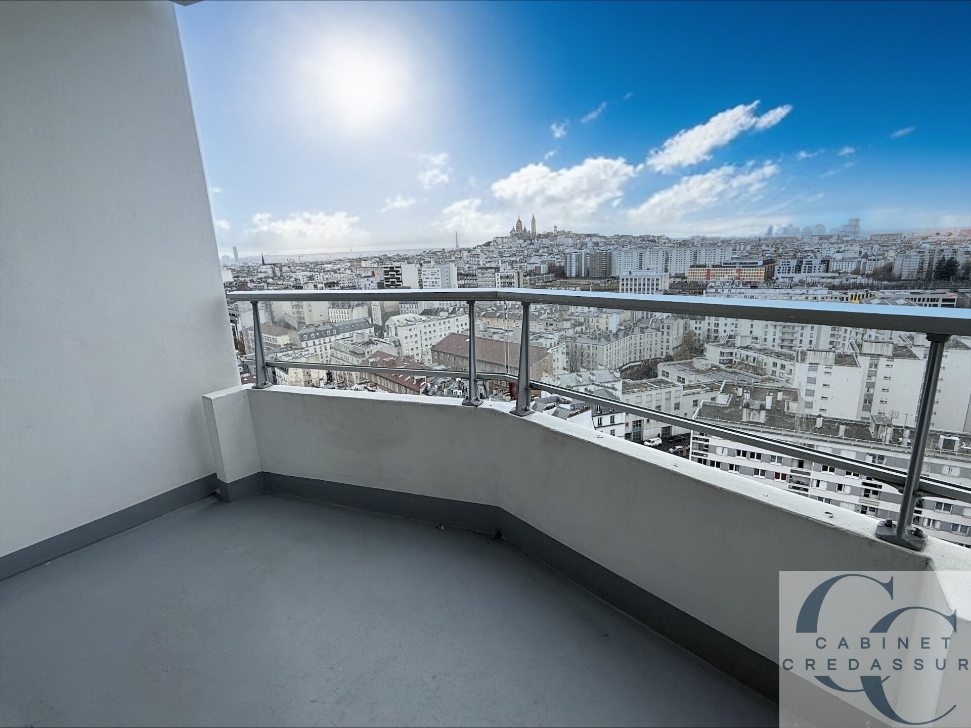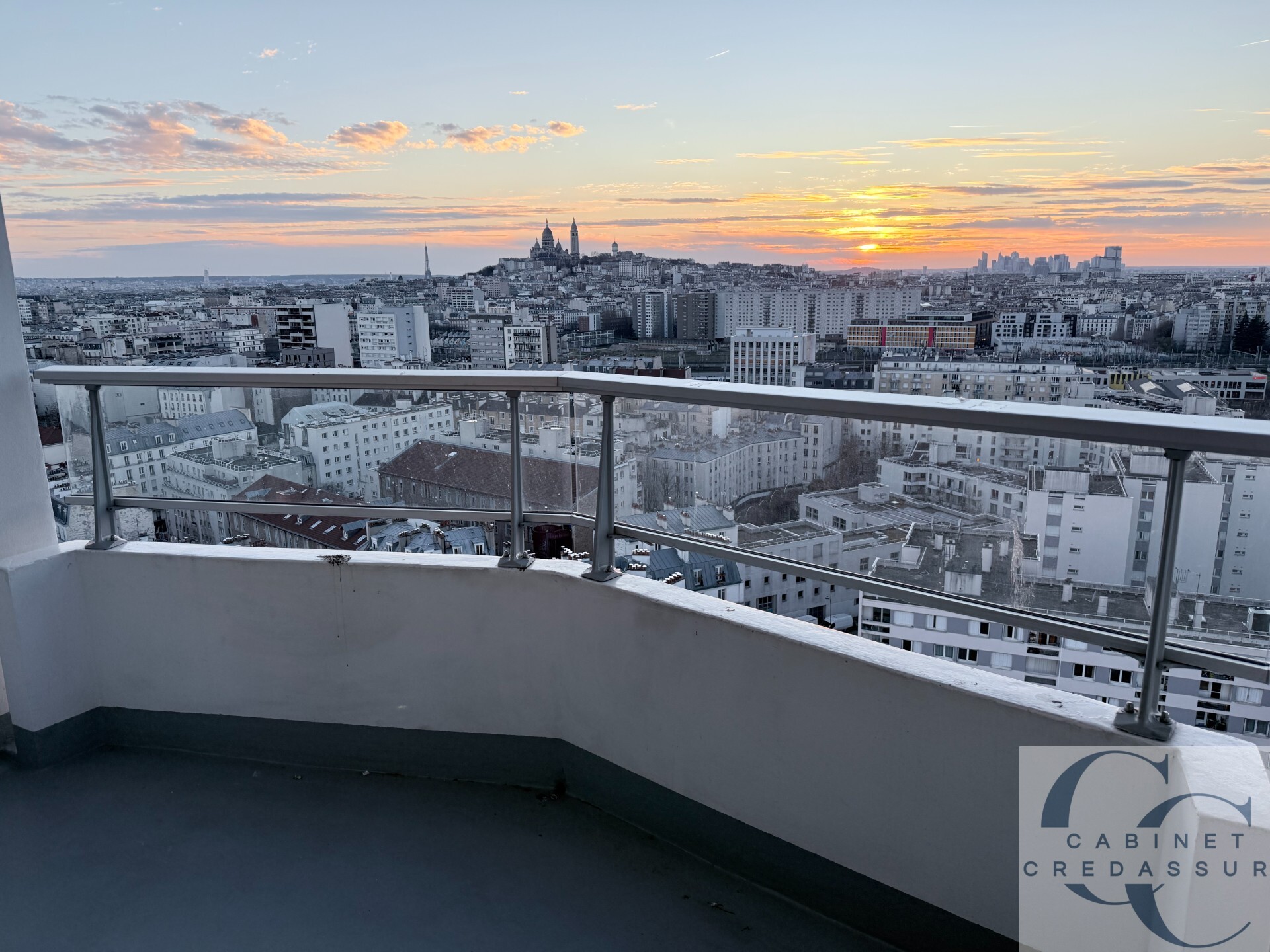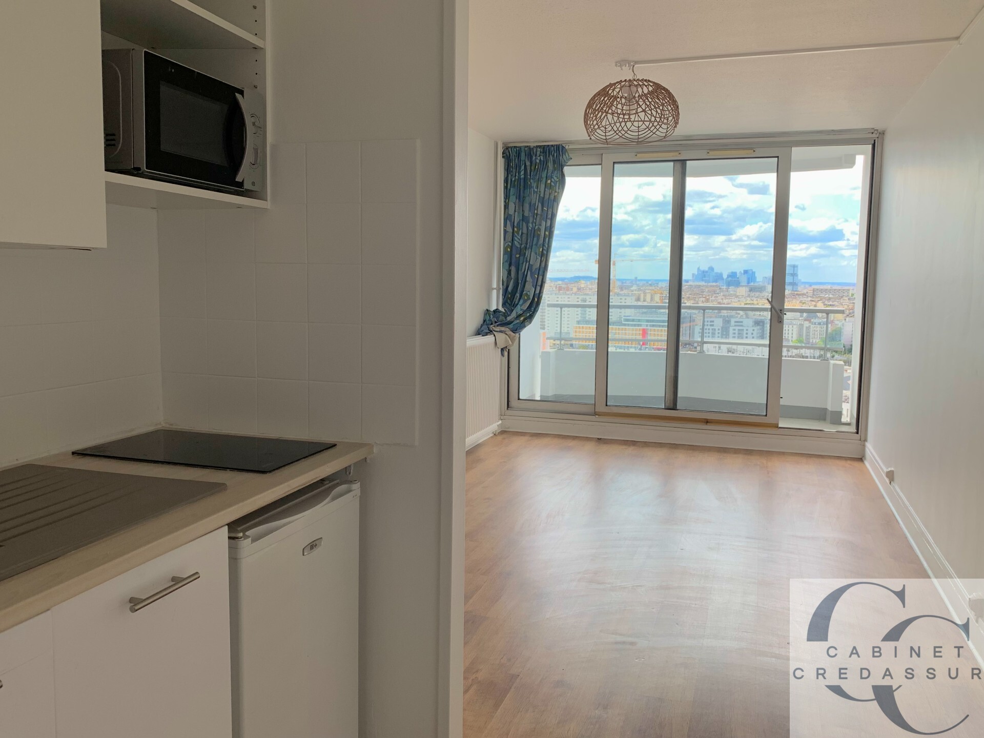 RARE, VUE EXCEPTIONNELLE SACRE COEUR ET MONUMENTS PARISIENS; SPACIEUX STUDIO TRES ENSOLEILLE AVEC BALCON TERRASSE. Proche métro Marx Dormoy, Marché de l'olive, ce studio de 26,10 m² environ exposé ouest est situé au 18ème étage avec 2 ascenseurs d'un bel immeuble des année 1974.